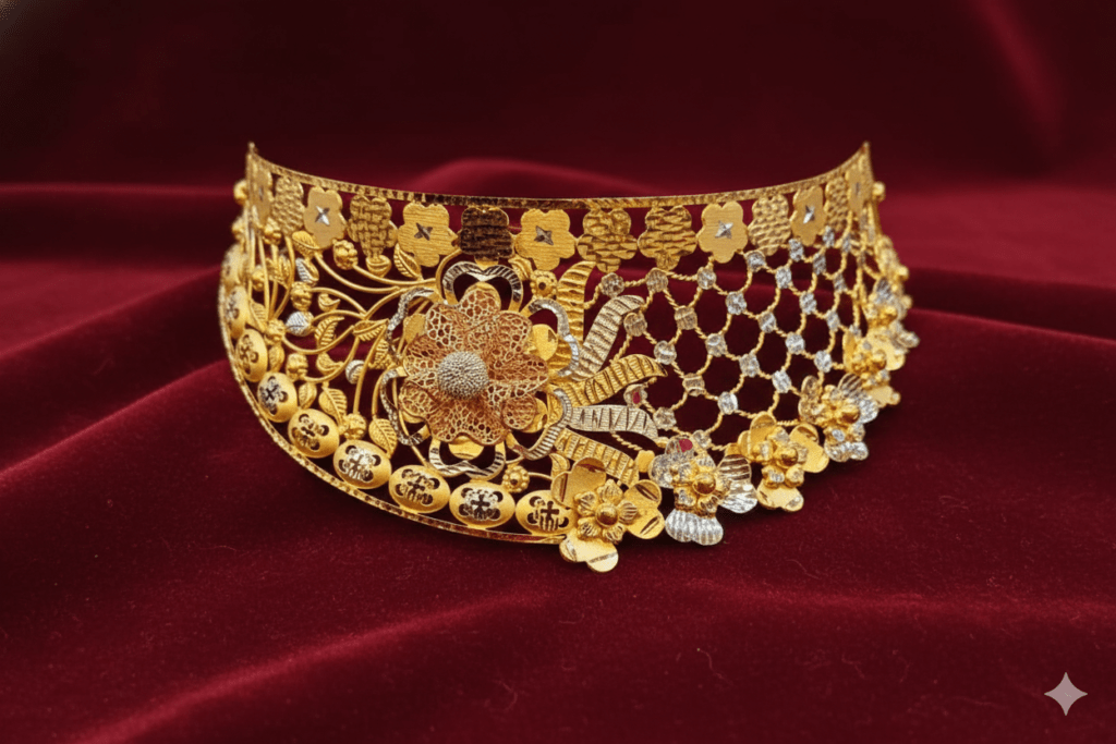 A timeless gold haram crafted with intricate detailing, perfect for weddings and grand occasions.